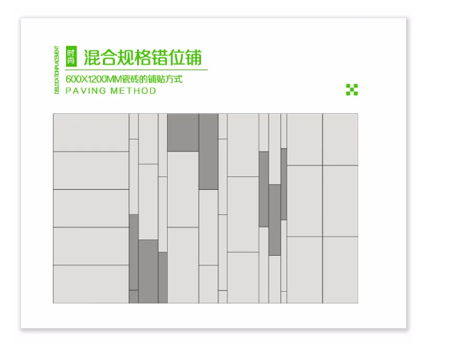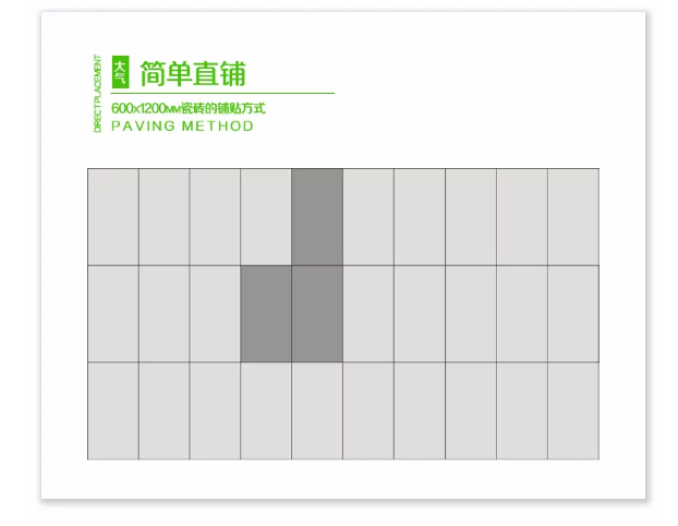 成都浩轩日用化妆品有限公司600x1200MM系列的铺贴方式多样化,直铺、工字型、回字形、混合铺贴等等都可适用,只有你想不到没有办不到的。